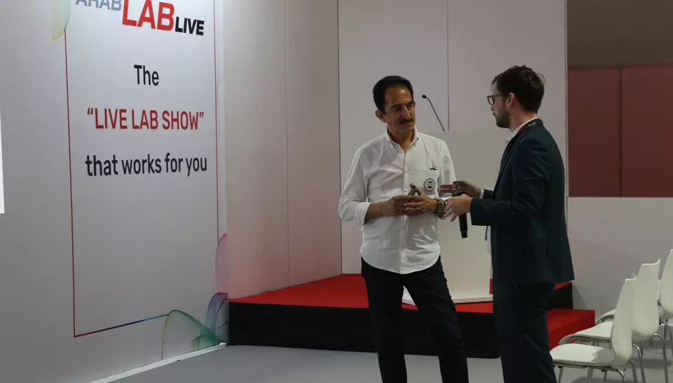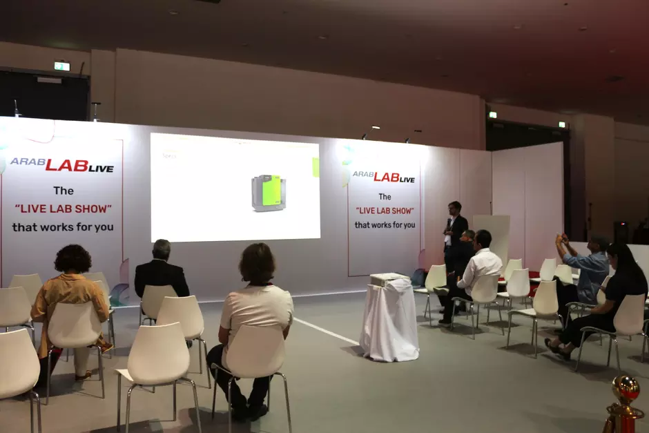 Another noticeable part of this year's Arablab Exhibition was the prominent design of the stand. With it, the main goal of the booth is to embrace ELGA Veolia's sustainable approach. Thus, the stand was built in the form of one of ELGA's most popular products, the PURELAB Chorus 1 Complete, which made visitors feel as though they are entering inside of the product and discovering the beauty of such technology at the same time.